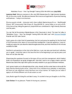 January 7, 2026HIB-Masterclass-2025-07-JUL-Luke-Carlson-TRANSCRIPT Related Posts221 – John Little – The Time Saver’s Workout Part 2467 – Product Manager to Personal Trainer: The Safe Strength HIT Business Blueprint with James Brown145 – Luke Carlson – How To Generate More Revenue In Your High Intensity Training Business